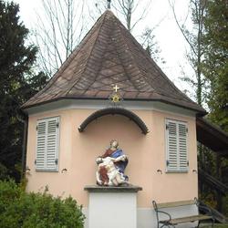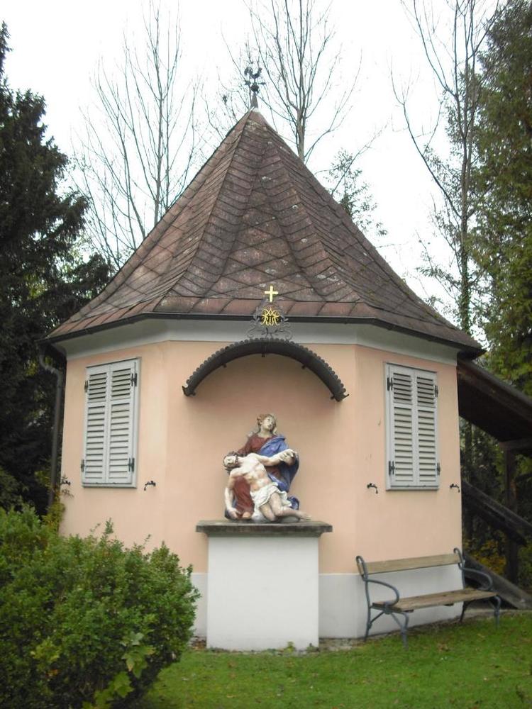 Am westlichsten Ende des Gartens befindet sich ein barocker achteckiger Pavillon aus dem 18. Jahrhundert. An der östlichen Wand dieses Bauwerkes steht auf einem Sockel unter einem gebogenen Dach eine farbige steinerne Pietagruppe, die aus der der Zeit um 1730 stammt und der zweifellos hohem künstlerischen Wert zukommt. Das schmucke Gartenhäuschen aus der Spätphase des Barocks zählt damit zu den älteren Gebäude der heutigen Stadtgemeinde. Die Pieta (italienisch: 'Frömmigkeit, Mitleid') ist in der bildenden Kunst die Darstellung Marias als Mater Dolorosa mit Leichnam des vom Kreuz abgenommenen Jesus Christus.